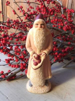 Black Forest Chalkware~ Folk Art 6" Icy Pink Santa w/satchel of snowballs