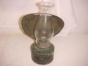 ANTIQUE - PRIMATIVE TIN CARRIAGE ? OIL LAMP - THICK LENS-DUAL WHALE OIL BURNER ?