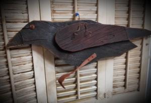Primitive Handcrafted Wooden Crow Wall Door Hanger ~Folk Art ~ Rusty Wire ~