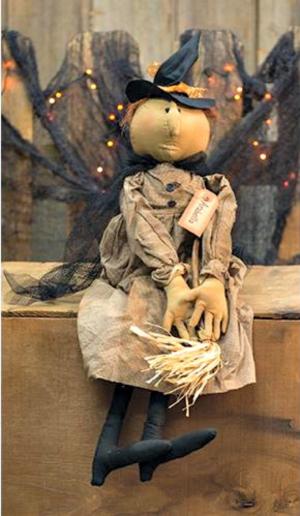 Primitive `Arabella Witch Doll` with Broom and Hat``` Halloween` Fall 27" Tall