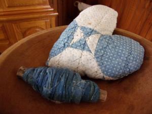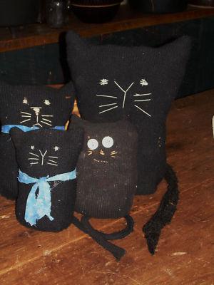 SET OF 4 PRIMITIVE SOCK CATS ANTIQUE EARLY LOOK OLD.STOCKINGS BLUE CALICO