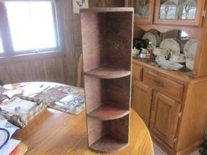 ANTIQUE VINTAGE SHOESHINE CARRIER MADE INTO CUPBOARD WITH OLD ITEMS
