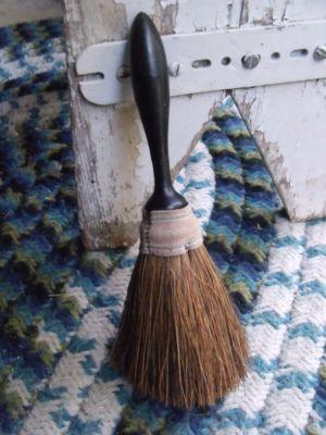 Vintage Antique Wood Paint Brush Horse Hair Round Primitive