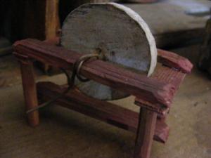 HANDMADE GRINDING WHEEL TOOL OLD BARN WOOD 4 LOG CABINS ARTIST PAT BROYLES