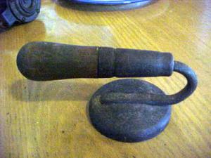 PRIMITIVE ANTIQUE MASON/BALL CANNING JAR OPENER WORKS CAST IRON/WOOD REPURPOSE?