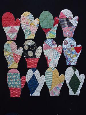 12 PRIMITIVE ANTIQUE FOLK ART CUTTER QUILT CHRISTMAS MITTENS