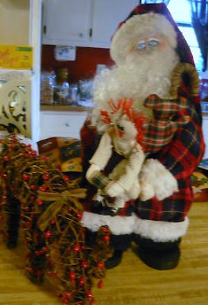 Primitive Christmas Santa with Deer,Toys,Handmade Folk Art Saint Nick