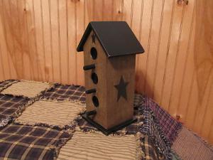 PRIMITIVE WOOD BIRD HOUSE BLACK TAN CRACKLE COUNTRY STAR DECOR