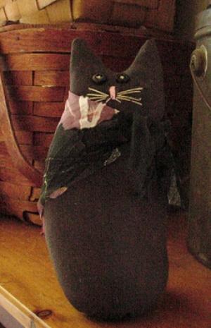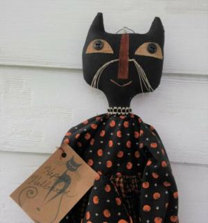 Primitive Halloween Cat/Painted 24" W/Candy Corn Pillow