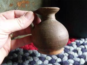 Miniature Rustic Primitive Antique Hand Thrown Redware Pottery Jug