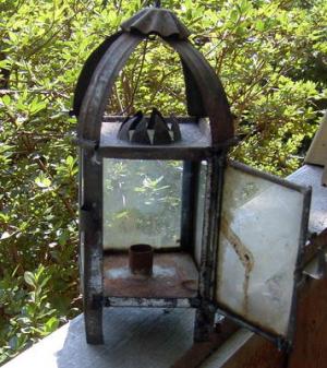 19TH CENTURY EARLY LIGHTING TIN AND GLASS LAMP LANTERN