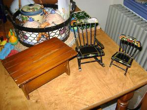 Vintage Primitive Hand Painted Rocking Chair, Chair, and Bench Table