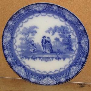 FLOW BLUE SERVING CHARGER IN THE RARE "WATTEAU" PATTERN "BUESLEM DOULTON"