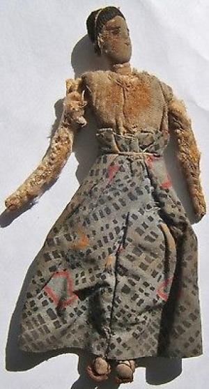 Vintage Primitive Cloth Rag Doll Hand Made Folk Art 6" European? American? NR