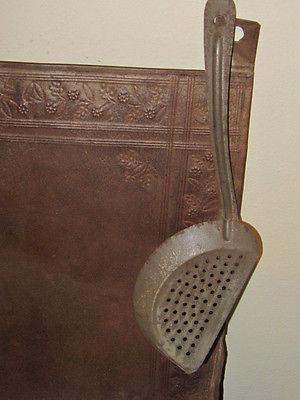 * OLD EARLY PRIMITIVE TIN SPOON/SKIMMER/SIEVE WITH LONG HANDLE *