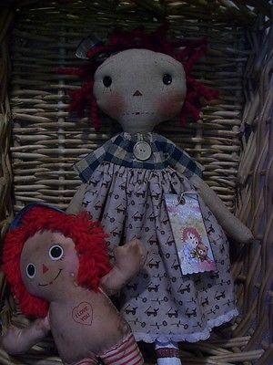 PRIMITIVE RAGGEDY ANN~with olde well loved dolly~