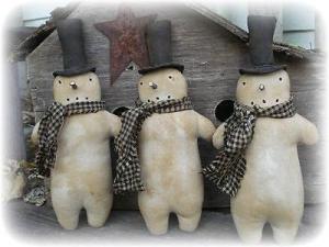 Primitive Winter Christmas Snow Men Ornies Bowlfillers dolls~jillykbee~