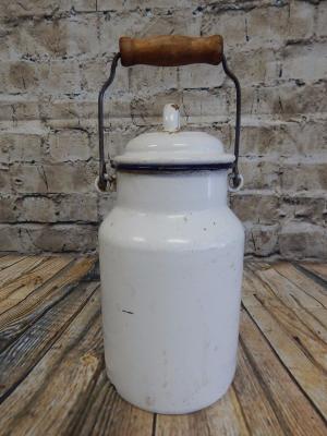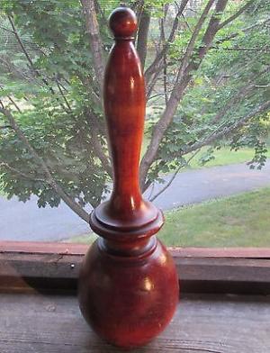 NICE SMALL ANTIQUE WOOD JAR with LID AND WIRE HANDLE
