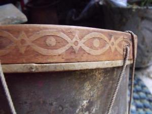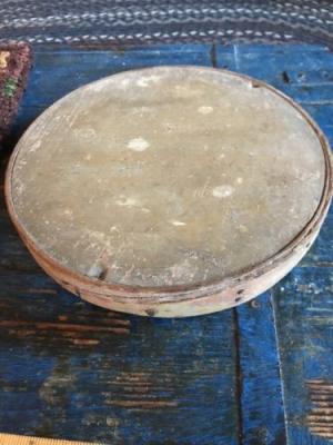 Rustic Old Primitive Antique Tin Drum With Inlaid Wood Bands Toy ? Shabby Sweet