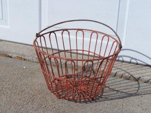 Antique Wire Basket Red Coated Vintage Primitive Egg Field Bail Handle, 14-1/2"