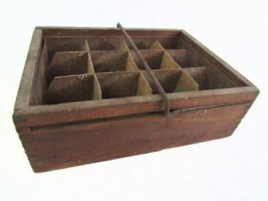 Primitive Wooden HARDWARE seed / hardware MEASURING BIN portable old push rods