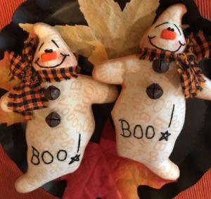 Primitive FolkArt~Halloween 5" Little Boo Ghost Ornies Set Of 2