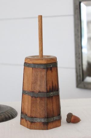 Miniature Wood Butter Churn Salesman Sample Staved Tin Child Toy Antique Vintage
