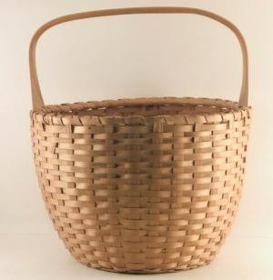 Vintage Native Maine Woven Split Ash Gathering Basket With Bentwood Handle
