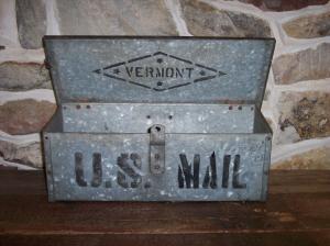vintage rural farmhouse galvanized U.S. mail steel mailbox breadbox vermont