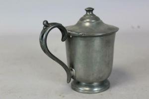 NICE 19TH CENTURY PEWTER SUGAR BOWL WITH IT''S ORIGINAL SCOOP