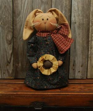 HANDMADE PRIMITIVE SPRING EASTER BUNNY RABBIT STUMP DOLL FLOWER