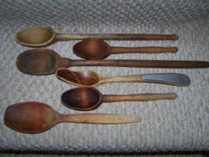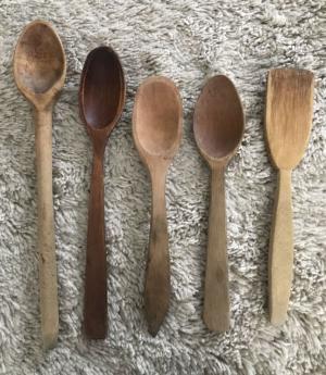 LOT OF (5) OLD VINTAGE FARMHOUSE PRIMITIVE WOODEN SPOONS