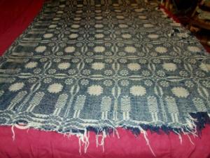 Early Primitive Indigo Blue Coverlet Material (Part of Tapersty) 64"x49" w/Holes