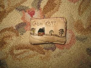 Primitive tiny Sampler Pillow~1849 The Little Cabin On The Hill~ Folk Art
