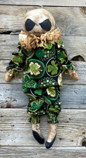 Primitive Folk-Art Lucky JACK Skellington Shamrocks Grungy Doll