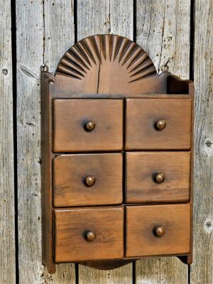 Antique Primitive Wooden 6 Drawer Spice Cabinet with Dama