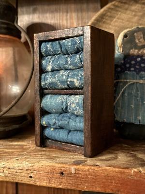 Tiny Wooden Box With Scraps Of Blue Calico Fm Early Quil