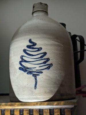 ANTIQUE YELLOW SLIP DECORATED REDWARE JAR WITH HANDLE 19TH CENTURY