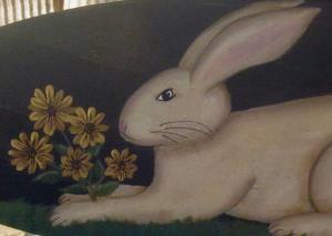 *~*PRIMITIVE*~* HP FOLK ART PRIM BUNNY *~* SUNFLOWERS *~* SPRING *~* STRETCHER