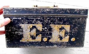 1830-60''s Everett Family ID''d Antique Tin Toleware Document Deed Box Onondaga NY