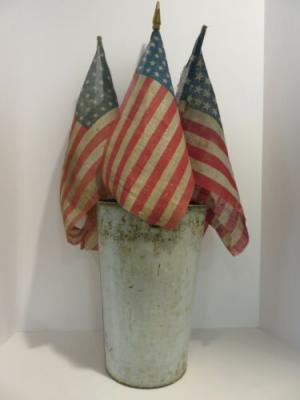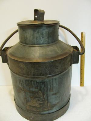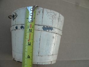 LARGE ANTIQUE NEW HAMPSHIRE SAP BUCKET IN WORN OLD WHITE PAINT, AAFA