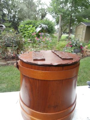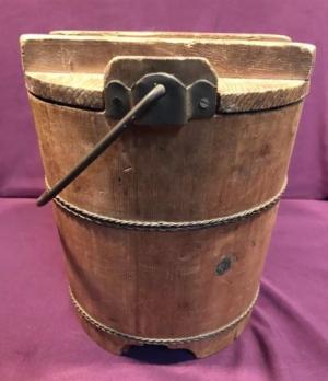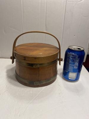 Vintage Country Primitive Swing Oak Handle Pine Firkin Sugar Bucket W/ Cover