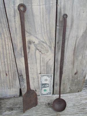 Early 1800''s Blacksmith-Made Long Handled Spoon & Peel / Spatula / AAFA / NR