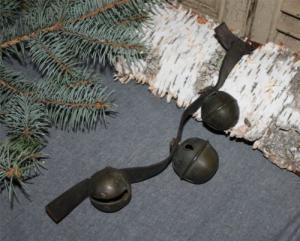 3 Antique Brass Sleigh Bells / Reindeer BELIEVE