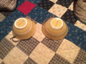 Early Look Primitive Ragon House Yellow Ware Christmas Tree Ornaments Set of 2