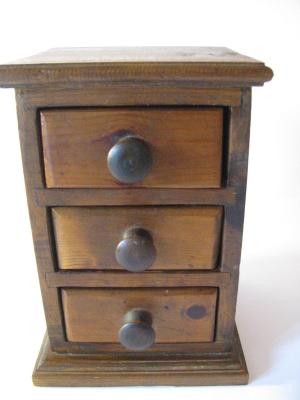 Vintage Primitive Wood Three Drawer Shelf Spice Box