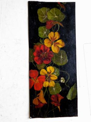 Nasturtains flowers oil painting on tin late 1800''s RARE