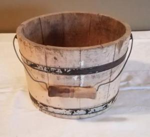 ANTIQUE WOODEN BUCKET WITH WOODEN HANDLE - GREAT FIND !!!