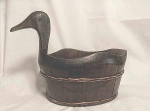 LARGE Carved ANTIQUE Early American PRIMITIVE Wood BUCKET Duck