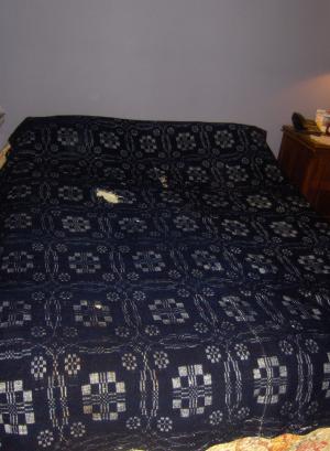 1800s Blue And White Coverlet Center Seam Light & Dark Sides